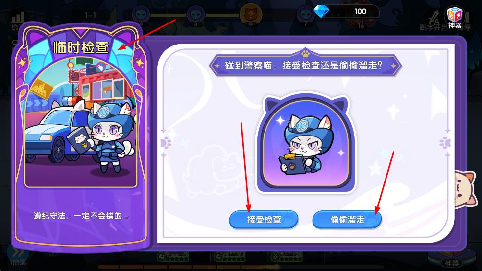 4、遇臨時檢查事件,想穩(wěn)選接受檢查,想冒險選偷偷溜走,不同選擇影響后續(xù)游戲進程,按需抉擇。