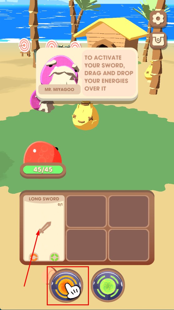 2、戰(zhàn)斗時(shí),根據(jù)提示,將能量拖拽到長(zhǎng)劍圖標(biāo)上,可激活長(zhǎng)劍,借助長(zhǎng)劍對(duì)敵人發(fā)起攻擊,提升戰(zhàn)斗效率。