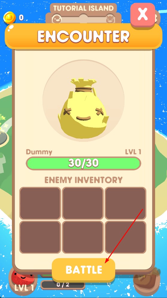 1、在遭遇界面,能看到名為Dummy的敵人,等級(jí)1且生命值滿值,點(diǎn)擊下方BATTLE按鈕,即可開(kāi)啟與該敵人的戰(zhàn)斗。