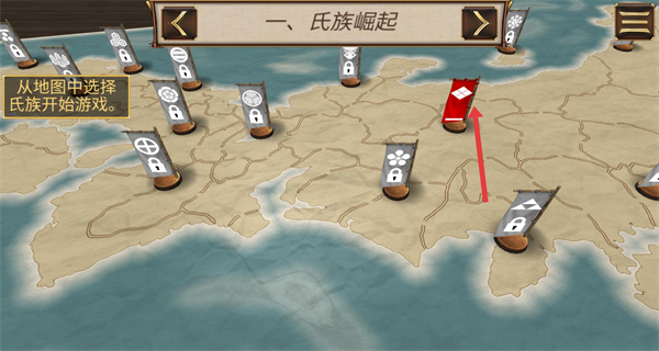 2、在氏族崛起地圖選擇標紅旗幟的可玩氏族作為開局勢力,以此為根基投身戰(zhàn)國亂世開啟領(lǐng)地擴張與氏族崛起的征程。