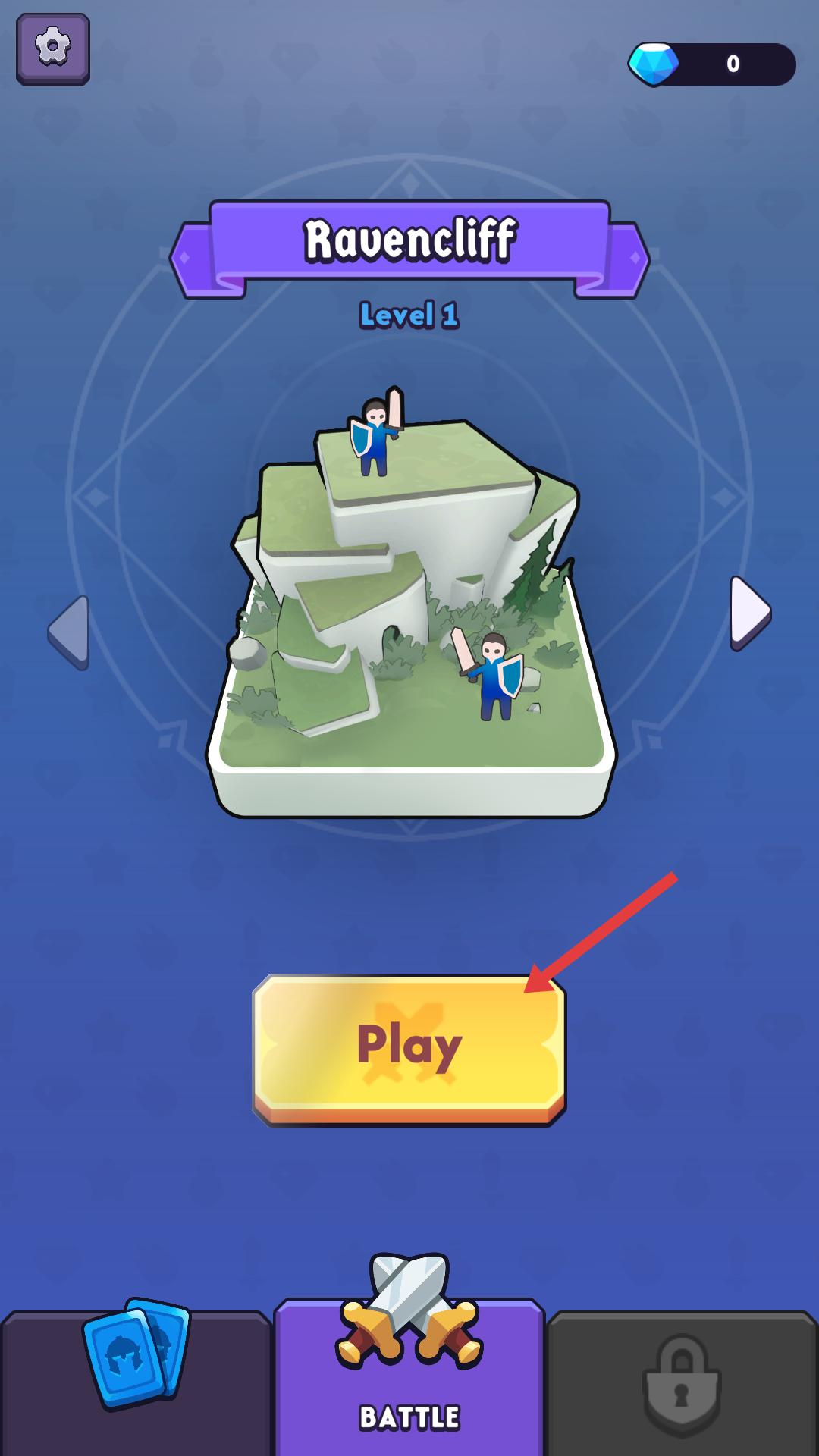 1、在游戲初始界面,點擊Play按鈕,即可進(jìn)入Ravencliff的Level1關(guān)卡,開啟城堡防御類的冒險挑戰(zhàn)。