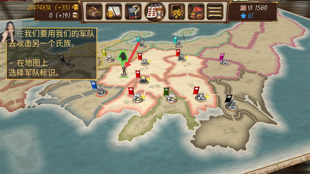 3、觀察地圖,找到處于攻擊范圍內的敵方領地,比如遠江縣,點擊選擇該領地,準備對其發(fā)起攻擊。