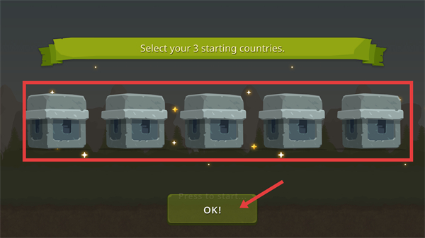 1、選擇初始國家選好后點擊OK按鈕,即可開啟游戲進(jìn)入世界地圖界面開始國家發(fā)展與擴(kuò)張。