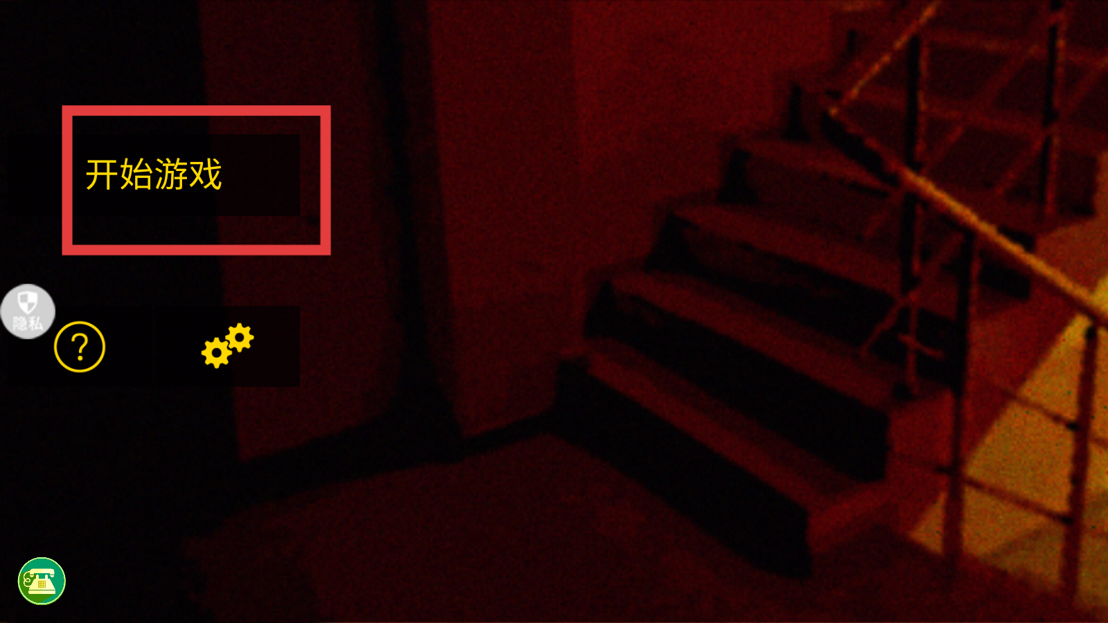 1、進入游戲會看到帶有昏暗樓梯場景的初始界面,點擊開始游戲按鈕,即可開啟僵尸射擊冒險,準(zhǔn)備應(yīng)對各種挑戰(zhàn)。