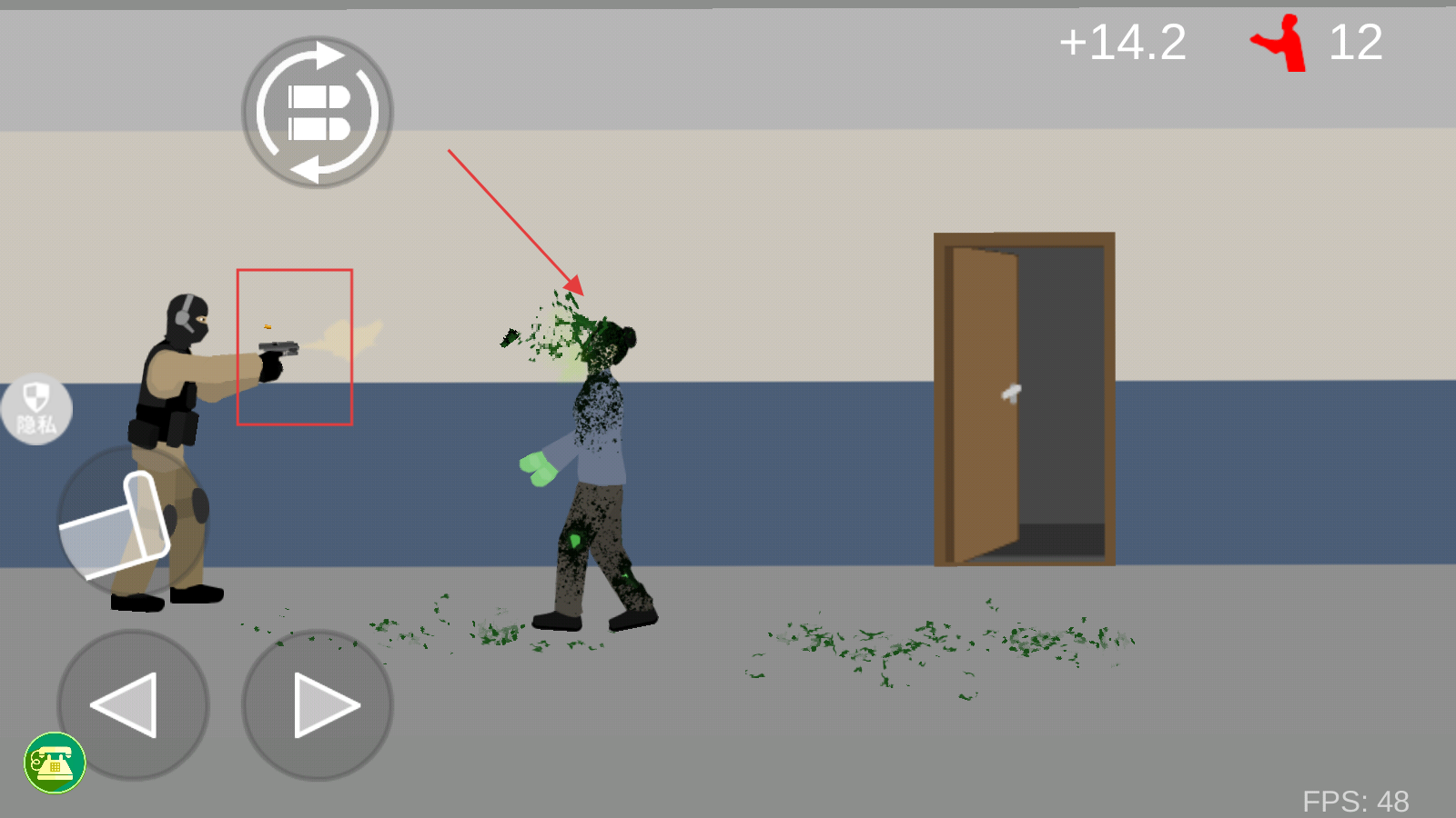 4、遇到僵尸時,點擊射擊按鈕,角色會向僵尸發(fā)起攻擊,成功擊中可消滅僵尸,推進游戲進程,獲取分?jǐn)?shù)獎勵。
