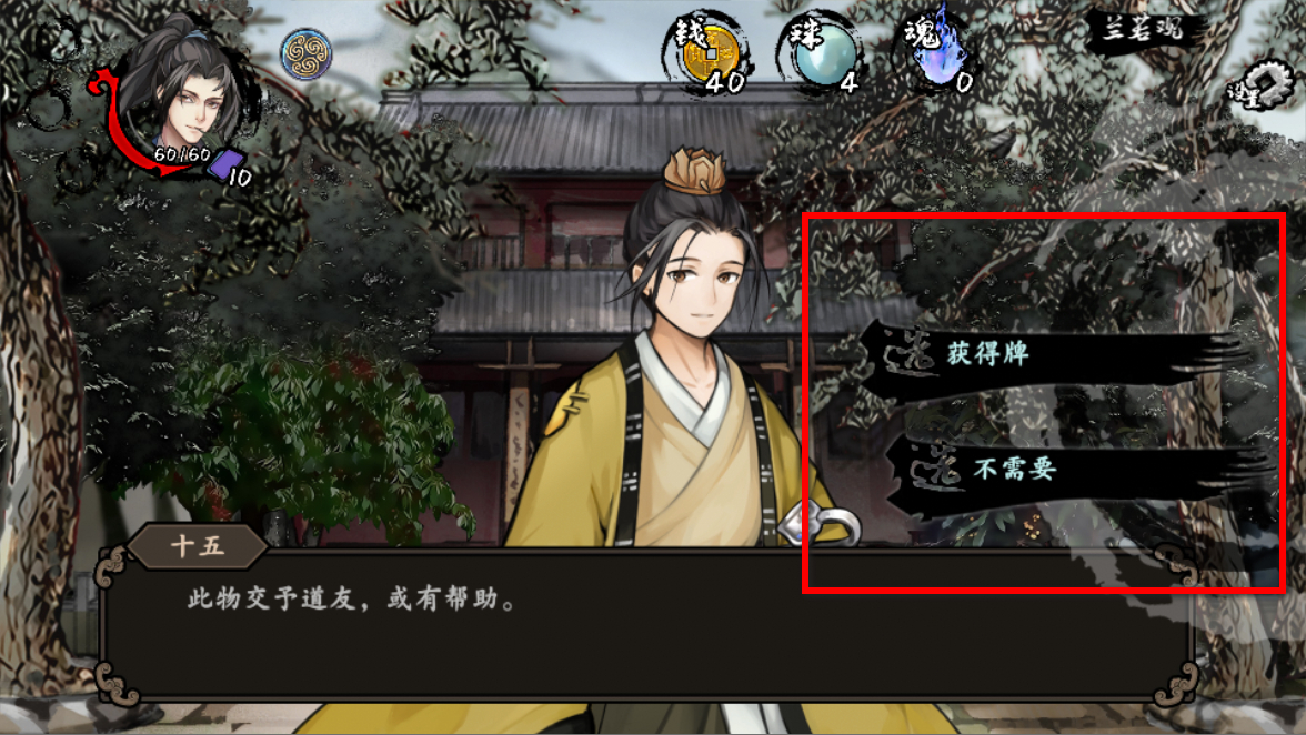 3、和其他角色互動時,會有獲得牌或不需要的選項,可根據(jù)自身需求選擇,獲得的牌能豐富自己的卡牌庫。