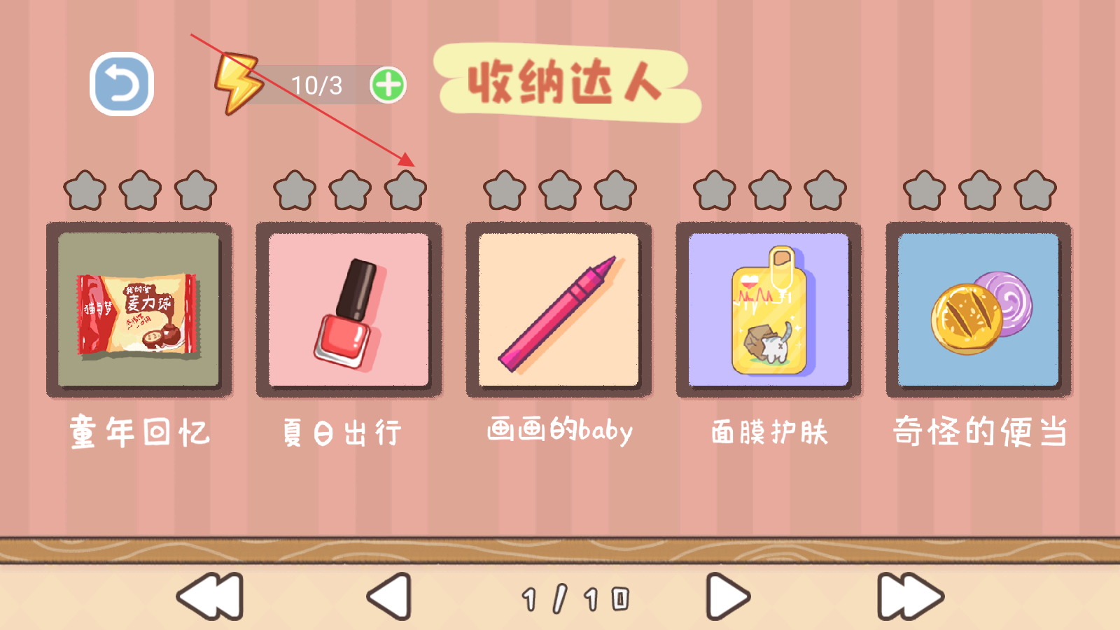 2、在關卡選擇界面,瀏覽不同主題的關卡如童年回憶、夏日出行等,點擊想要挑戰(zhàn)的關卡卡片進入關卡。