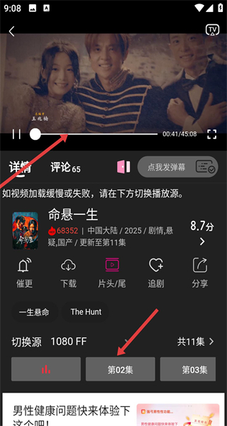 4、播放影視時可自由拖動進(jìn)度條跳轉(zhuǎn)無趣的劇情,也能靈活切換清晰度切換集數(shù)按需選擇觀看內(nèi)容。