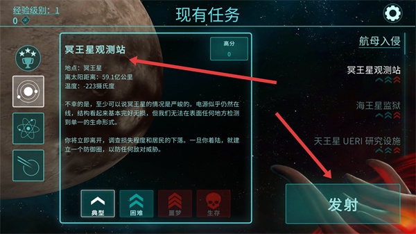 3、選擇好任務(wù),如冥王星觀測(cè)站后,玩家點(diǎn)擊發(fā)射,即可前往該任務(wù)地點(diǎn),開始執(zhí)行任務(wù)相關(guān)操作。