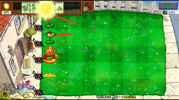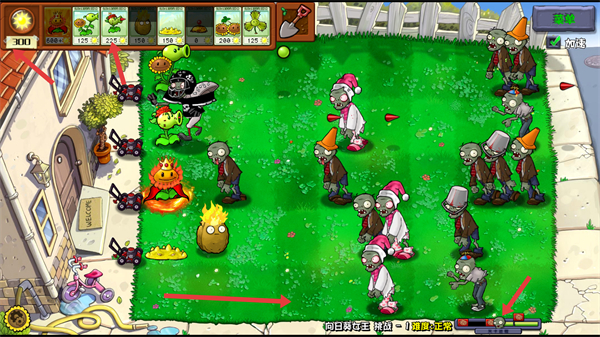 4、若防御不當(dāng)僵尸會(huì)侵入房子導(dǎo)致失敗,所以要合理布局植物,根據(jù)僵尸類型和進(jìn)攻節(jié)奏靈活調(diào)整植物陣容。