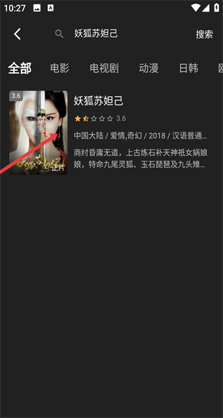 4、搜索到目標(biāo)短劇如妖狐蘇妲己,點(diǎn)擊封面或標(biāo)題進(jìn)入詳情頁即可開始播放輕松開啟觀劇體驗(yàn)。