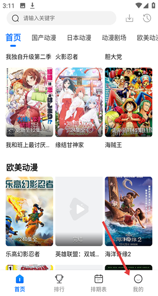 1、進(jìn)入APP首頁(yè)有國(guó)產(chǎn)日本等動(dòng)漫分類瀏覽找到想看作品,點(diǎn)我的可管理賬號(hào)查看觀看歷史等。