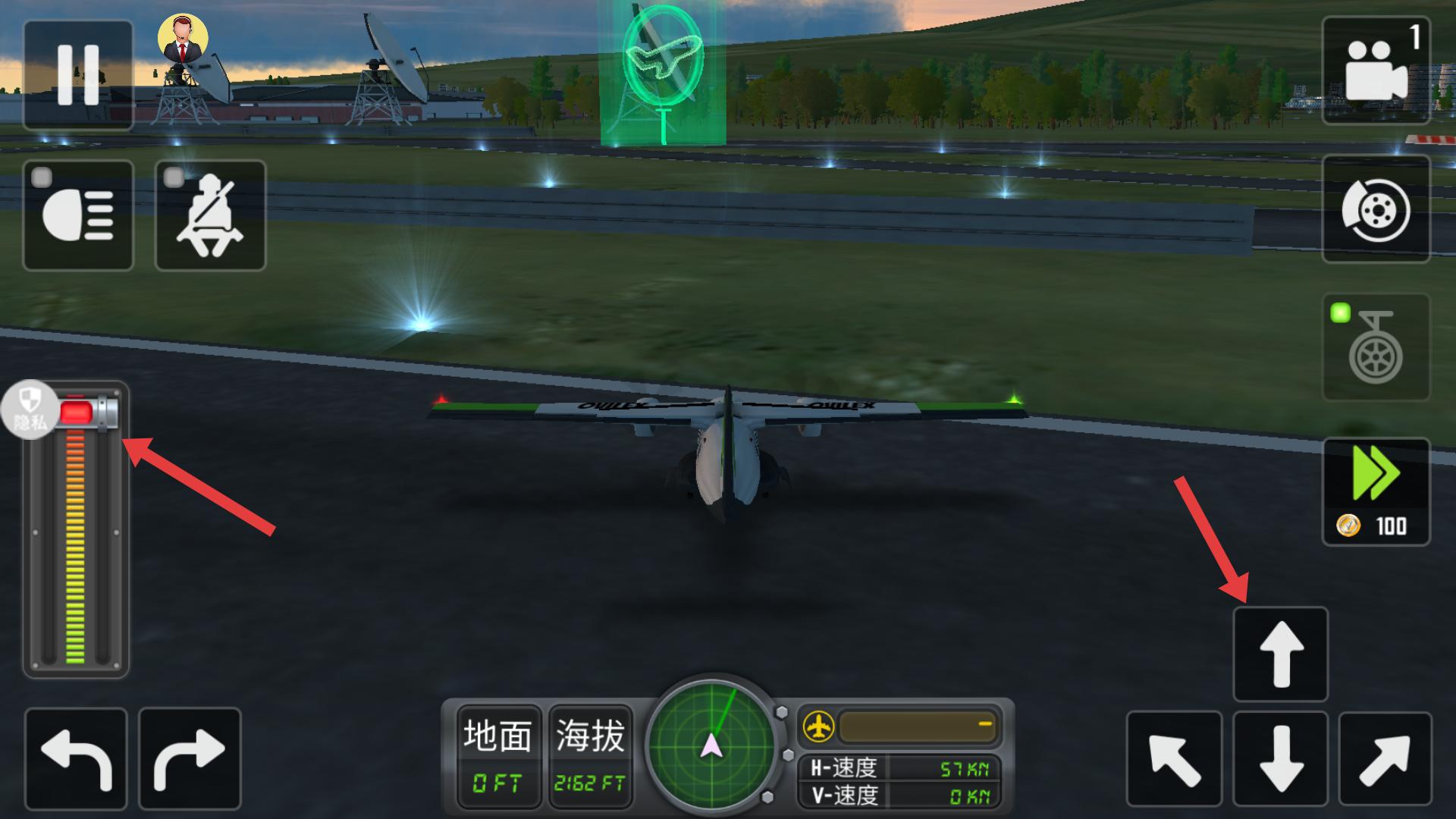 3、游戲里左側(cè)可調(diào)節(jié)動(dòng)力,右側(cè)箭頭按鍵能操控飛機(jī)方向,要合理操作來(lái)駕駛飛機(jī)。