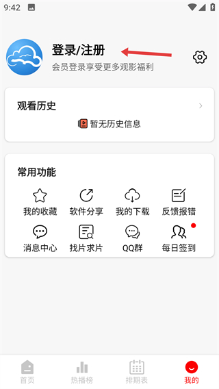 1、點(diǎn)擊登錄且注冊(cè)為會(huì)員可享受更多觀影福利,還能查看觀看歷史等方便后續(xù)觀影操作。
