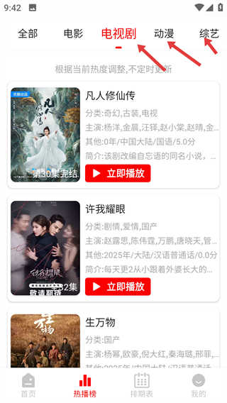 4、切換到電視劇,動(dòng)漫,綜藝,等分類每類都有豐富內(nèi)容,可根據(jù)喜好選擇點(diǎn)擊立即播放即可觀看。
