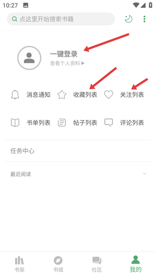 4、點(diǎn)擊我的可進(jìn)行一鍵登錄,登錄后能查看消息通知,收藏列表,關(guān)注列表等方便管理閱讀相關(guān)內(nèi)容。