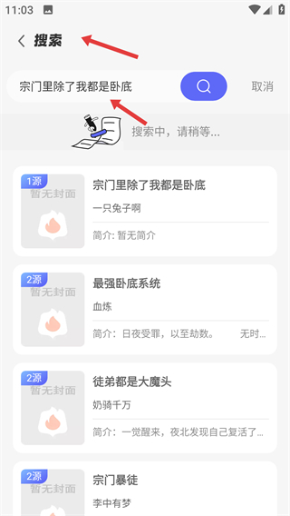 3、使用搜索功在搜索欄輸入書籍名稱如點擊搜索,就能找到相關(guān)書籍進(jìn)行閱讀。