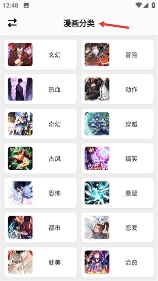 2、進入漫畫分類有玄幻,冒險等多種類型點擊對應(yīng)分類,可查看該類別的漫畫快速找到想看的作品。