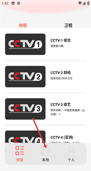 1、打開軟件,在底部導航欄找到本地選項,點擊該選項,進入本地播放器頁面。