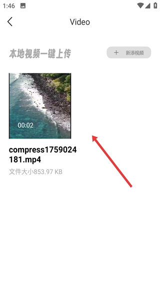 3、進入Video文件夾后,點擊新添視頻按鈕,從設備中選擇要添加的視頻。
