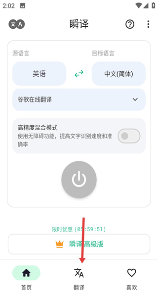 1、打開APP點底部翻譯進入翻譯頁,可切換源語言和目標語言,選谷歌在線翻譯開啟翻譯流程。