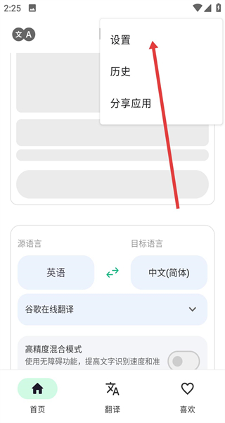 1、打開APP點屏幕右上角的三點展開菜單選設(shè)置,即可進(jìn)入設(shè)置頁調(diào)整自己所想要的APP功能參數(shù)。