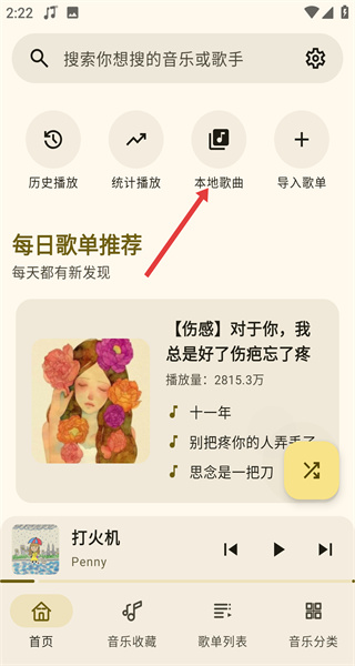 1、打開音樂軟件,在首頁找到本地歌曲選項,點擊該選項,進(jìn)入本地歌曲頁面。