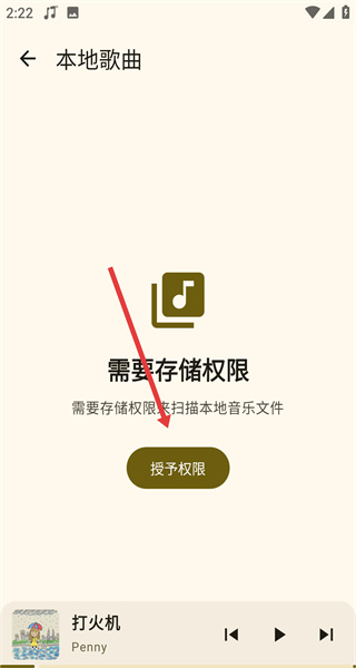 2、在本地歌曲頁面,若提示需要存儲權(quán)限,點擊授予權(quán)限按鈕,允許軟件獲取存儲權(quán)限。