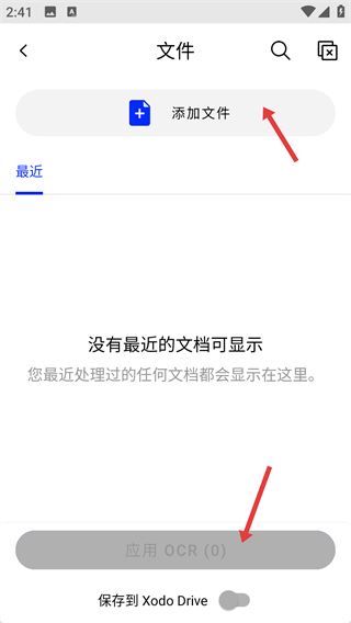 3、在文件添加界面可點(diǎn)擊添加文件將需要的文檔導(dǎo)入,也能進(jìn)行應(yīng)用OCR等操作對(duì)文件進(jìn)行識(shí)別等處理。
