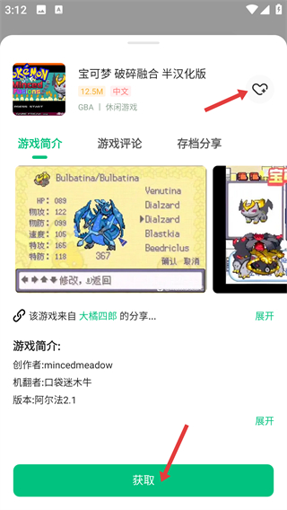 3、找到喜歡的游戲可查看游戲簡介評(píng)論等點(diǎn)擊愛心能收藏游戲,點(diǎn)擊獲取即可下載游戲方便后續(xù)游玩。