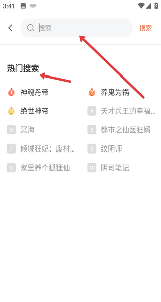 2、在搜索頁面除輸入搜索外還可查看熱門搜索詞條,點(diǎn)擊詞條能夠直接進(jìn)入對應(yīng)書籍音頻內(nèi)容頁面。
