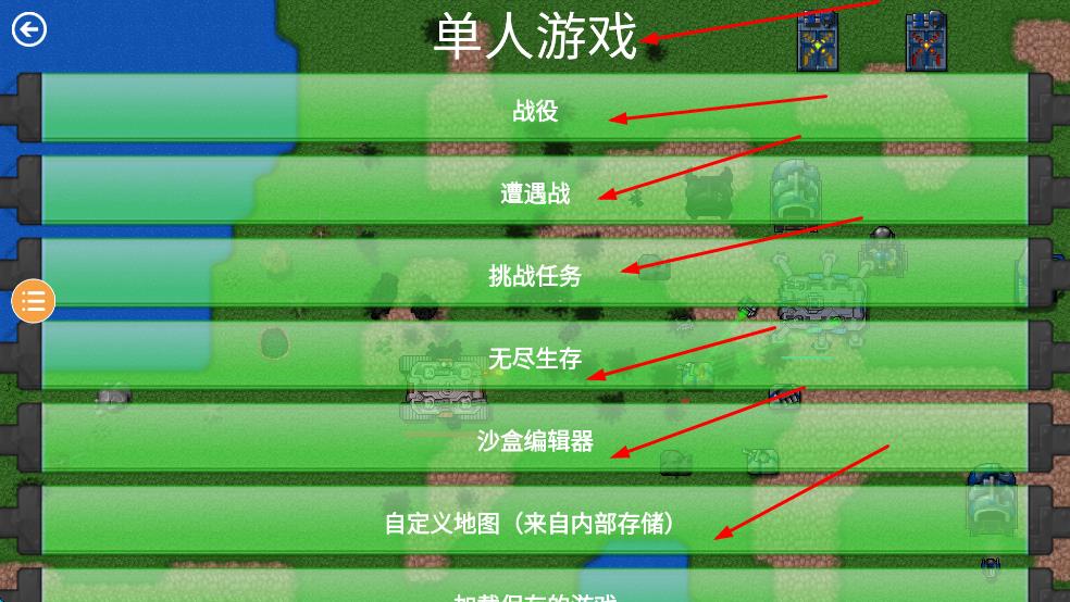 1、進(jìn)入單人游戲界面,可選擇戰(zhàn)役、遭遇戰(zhàn)等模式,依據(jù)喜好選模式開啟,體驗(yàn)不同玩法,推進(jìn)游戲進(jìn)程。