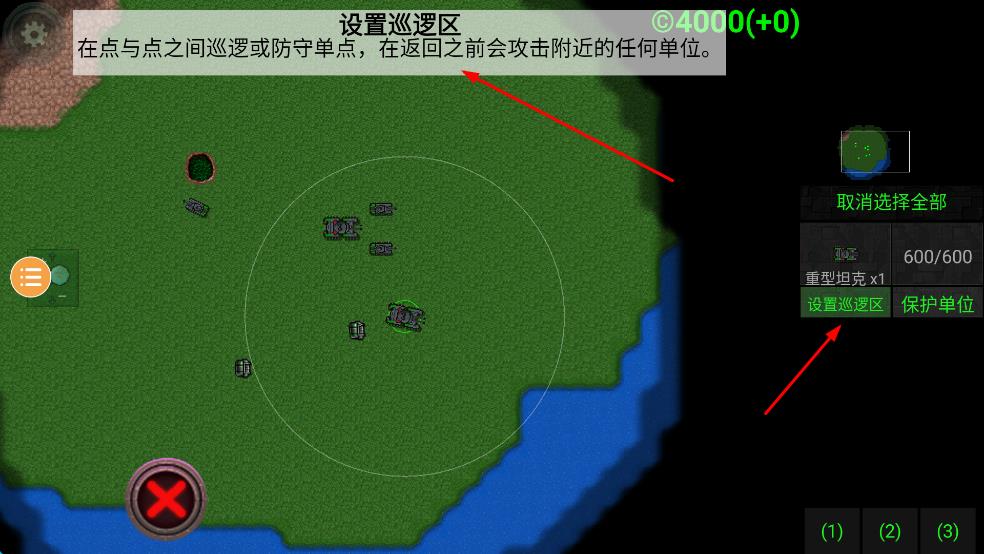3、點(diǎn)擊設(shè)置巡邏區(qū),讓單位在點(diǎn)間巡邏防守,遇敵方單位自動(dòng)攻擊,助力陣地防御,穩(wěn)固防線。