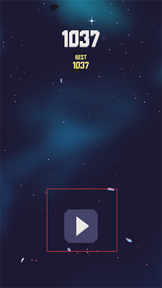 4、當(dāng)火箭碰到障礙物或游戲結(jié)束后,屏幕會(huì)顯示本次游戲的分?jǐn)?shù),點(diǎn)擊屏幕下方的播放按鈕,可以重新開始游戲。