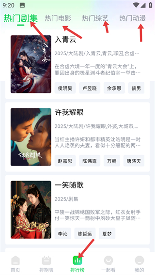 3、在排行榜有熱門劇集電影等分類,可查看各類熱門影視根據(jù)推薦選擇想看的發(fā)現(xiàn)優(yōu)質(zhì)內(nèi)容。