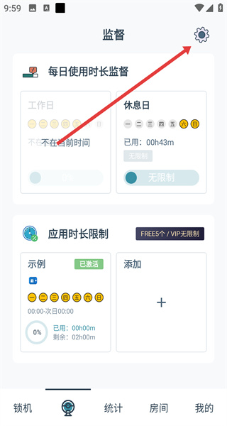 2、進(jìn)入監(jiān)督界面后,點(diǎn)擊界面右上角的設(shè)置圖標(biāo),進(jìn)入監(jiān)督設(shè)置頁(yè)面。