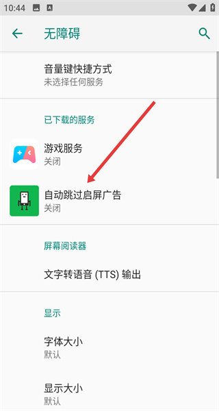 2、進入設置界面后,在無障礙相關選項,找到自動跳過啟屏廣告功能選項,點擊進入其設置頁面。