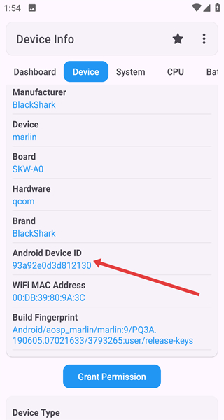 2、進(jìn)入Device頁面可查看Android Device的ID,WiFi和MAC與Address等設(shè)備標(biāo)識(shí)信息,方便查看記錄個(gè)人所需的數(shù)據(jù)。