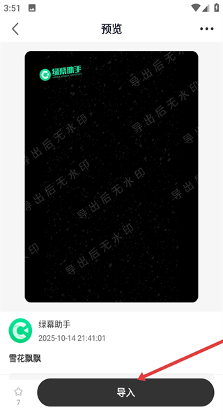 2、在特效預覽頁查看效果后能看到雪花飄飄的動態(tài)效果展示,確認是所需素材后點擊導入按鈕準備將素材加入創(chuàng)作流程。