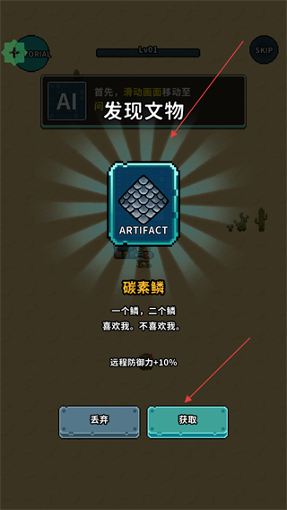 3、玩家在發(fā)現文物后,可選擇獲取來獲得文物,文物能帶來屬性加成如遠程防御力加百分之10,增強角色能力。