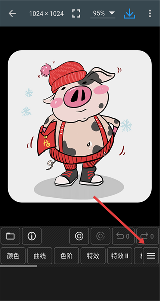 2、圖片加載完成后,在界面下方的功能欄里,點(diǎn)擊帶有三條橫線圖標(biāo)的按鈕,展開更多的圖片編輯功能選項(xiàng)。