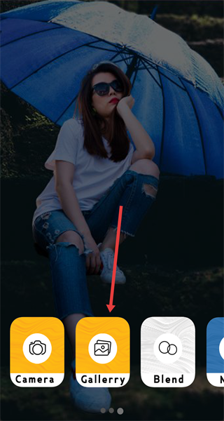 1、打開(kāi)圖片編輯應(yīng)用,在主界面找到帶有圖片圖案的圖庫(kù)類按鈕,點(diǎn)擊該按鈕,從手機(jī)存儲(chǔ)里挑選出需要編輯的圖片。