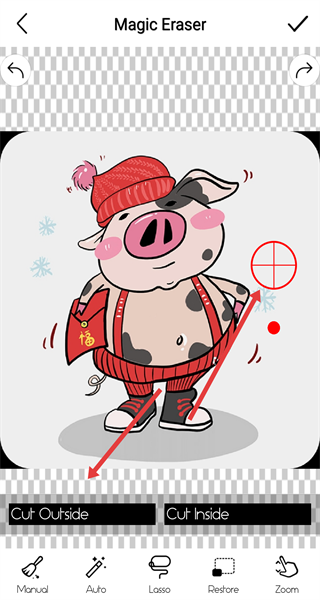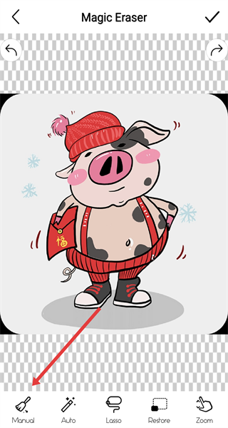 3、進(jìn)入手動(dòng)編輯模式后,在圖片上用手指涂抹或點(diǎn)擊,對(duì)不需要的部分進(jìn)行擦除,讓圖片呈現(xiàn)出更理想的初步效果。
