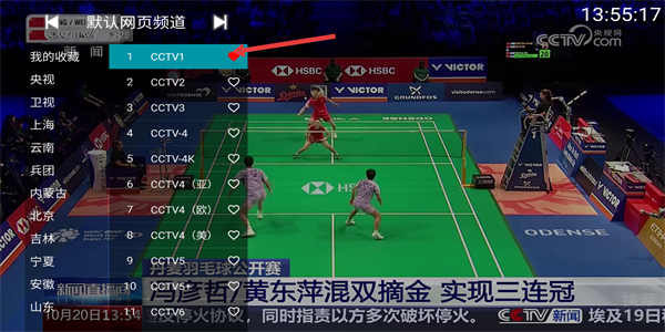 3、切換到地方頻道后,在頻道列表里找到CCTV1頻道,點(diǎn)擊該頻道,切換到央視綜合頻道,此時可觀看該頻道的節(jié)目。