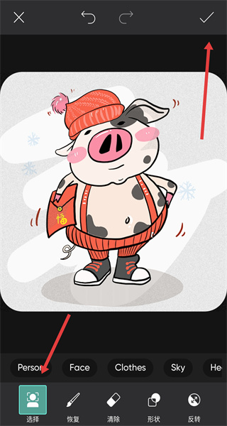 3、在特效選擇頁面,挑選合適的特效并應(yīng)用到圖片上,應(yīng)用后還能對(duì)特效相關(guān)參數(shù)進(jìn)行調(diào)整,調(diào)整好后點(diǎn)擊界面上方的確認(rèn)按鈕。