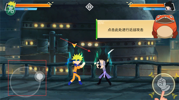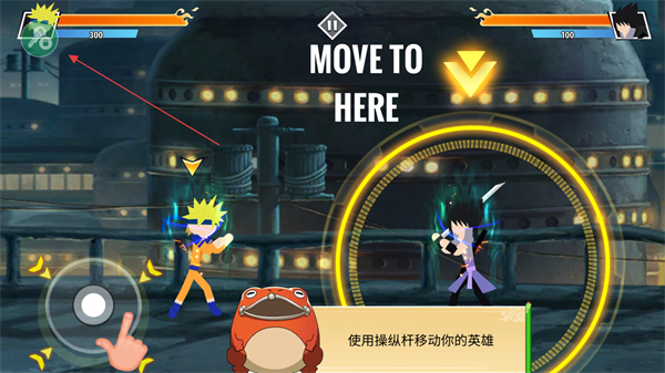 2、通過屏幕左下方的虛擬操縱桿,控制火柴人英雄移動,靠近或遠(yuǎn)離對手調(diào)整戰(zhàn)斗站位,為攻擊或躲避做準(zhǔn)備。