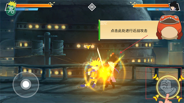 3、點(diǎn)擊屏幕右下方的近戰(zhàn)攻擊按鈕,操控火柴人對敵人發(fā)起近戰(zhàn)攻擊,可以打出連擊,對敵人造成更多傷害。