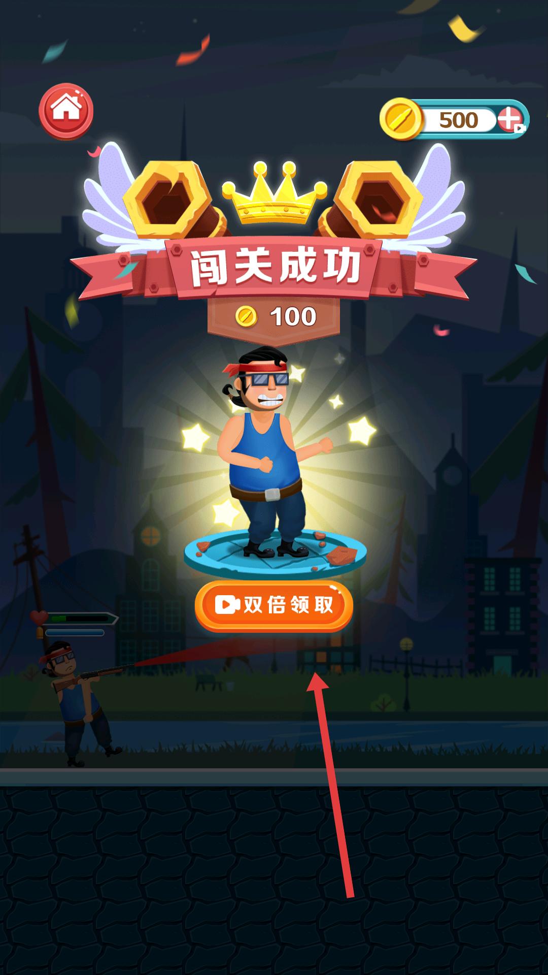 4、成功擊敗敵人后闖關(guān)成功,此時(shí)可點(diǎn)擊雙倍領(lǐng)取按鈕,觀看視頻獲取雙倍獎(jiǎng)勵(lì),積累游戲資源。