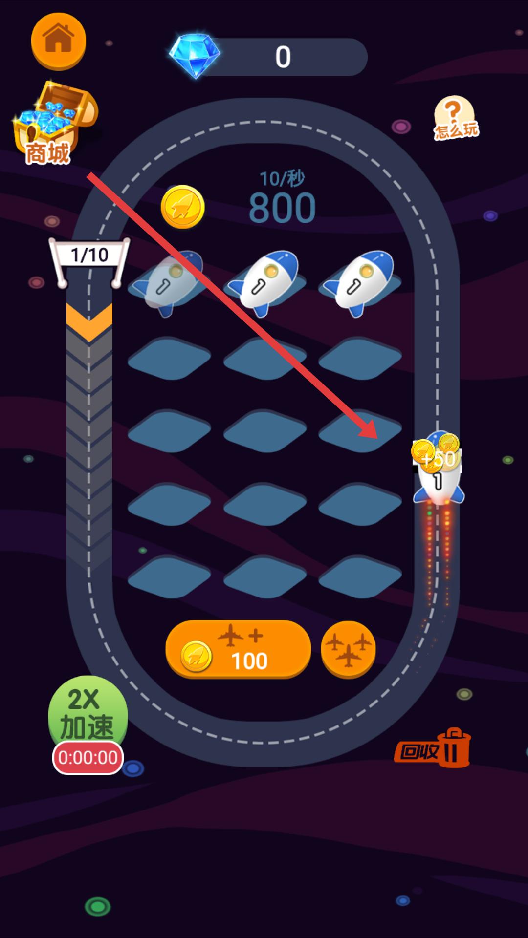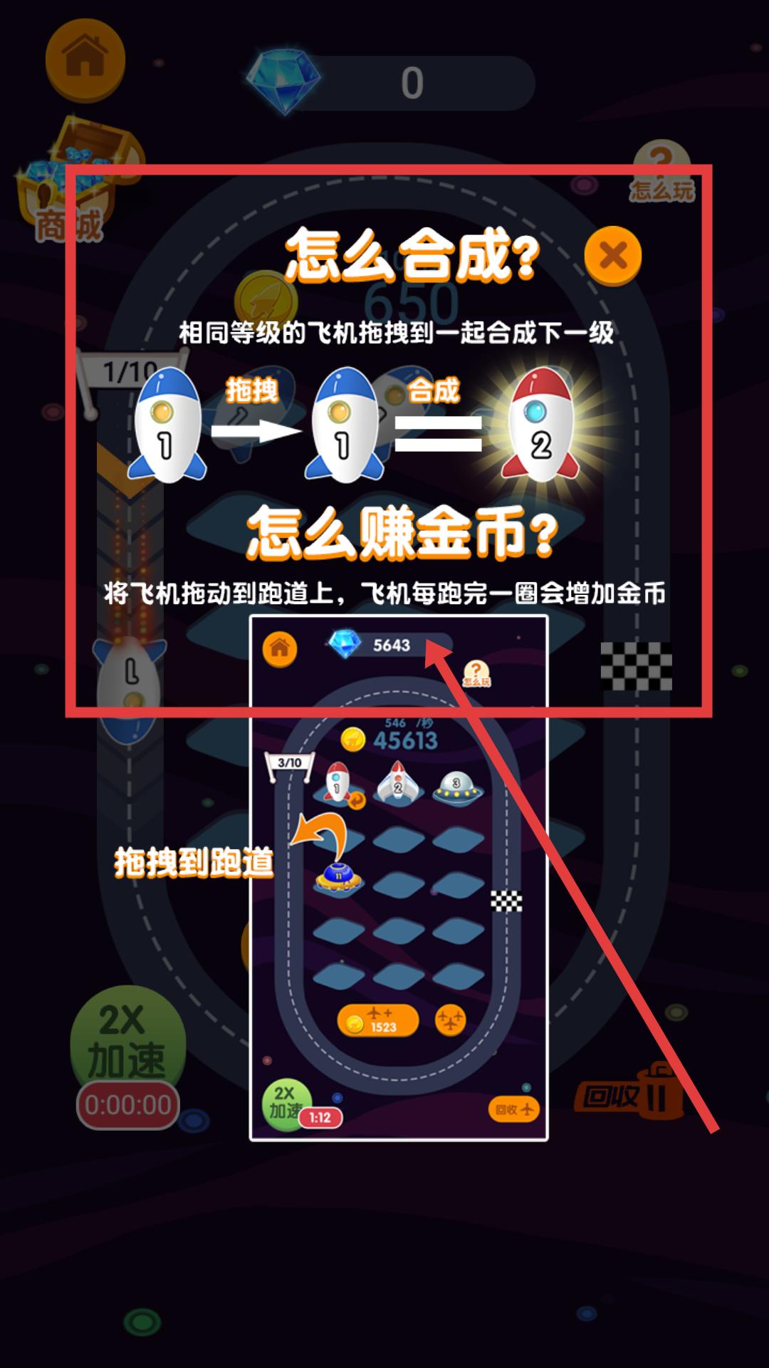 2、了解游戲玩法后進(jìn)入游戲跑道界面,將飛機(jī)拖動到跑道上,讓飛機(jī)在跑道上運(yùn)行,每跑完一圈就能增加金幣。