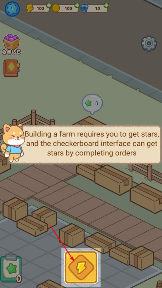 1、點(diǎn)擊閃電圖標(biāo)進(jìn)入棋盤界面,建農(nóng)場(chǎng)要星星,完成訂單能獲取星星推進(jìn)農(nóng)場(chǎng)建設(shè)。